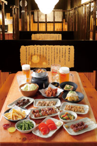 今回の特別メニューでは、醤油ダレで仕上げた牛ハラミの「タレ焼き牛ハラミ」、濃厚な旨味の「鶏と牡蠣の塩焼き」、「せせり塩焼き」、食感が楽しい「軟骨の唐揚げ」、ピリ辛の「麻辣牛ハチノス」といった、普段はなかなか味わえない部位をラインナップ。いずれも鳥貴族の均一価格で提供。ドリンクはサントリープレミアムモルツをはじめ、クラフトビール、ハイボール、酎ハイ、果実酒など充実し、幅広い客層を取り込んでいる。