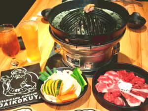 オススメは肩ロース・モモ・サーロイン・ヒレを盛り合わせた「大黒拼盤」(750元)。また道産ジャガイモ「インカのめざめ」を使用した「フライドポテト」、レモン・キムチ・鮭節から選べるうどんorそうめん「冷麺」、北海道名物「ラーメンサラダ」などサイドメニューに、北海道とうきび茶・夕張メロン・リボンナポリンなどドリンクも北海道らしいラインナップを揃える。