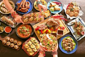 また「クリスマス・アフタヌーンティー」(1480元+10%/2人)も用意。ミニサイズのブッシュドノエルなど、9種のスイーツと5種のセイボリーが並ぶ。 そのほか地下1階のビュッフェレストラン「ブリリアント」では、冬季限定のテクスメクス料理フェアを開催中。