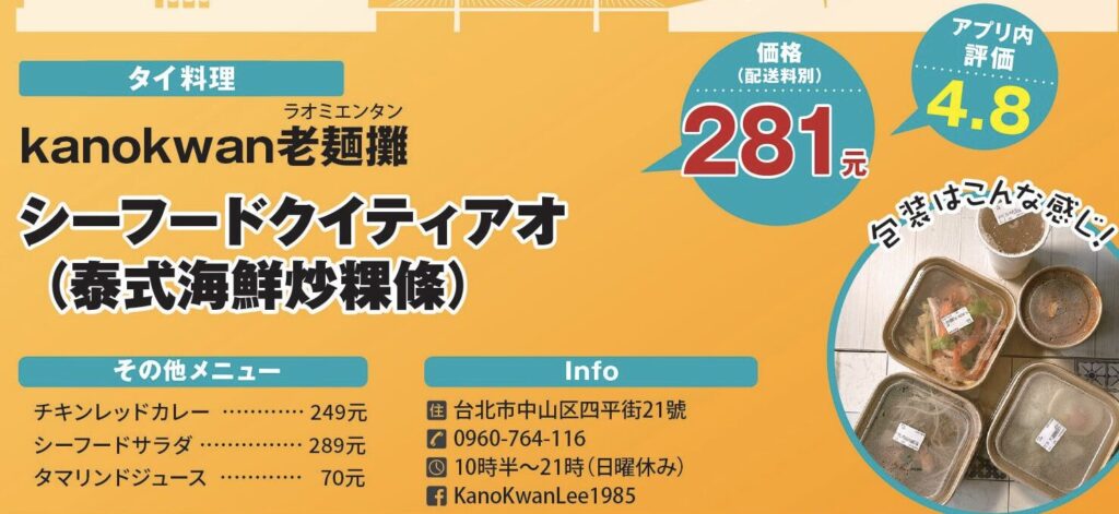 近頃外国料理多くない? ローカル店紹介してよ~と友人からツッコミが入ったのよね。でも今日は、台湾料理を食べたい気分じゃないんだ~でも台湾人に大人気の、酸っぱくて甘くて、ちょっと辛い異国の味を教えちゃう。しかも松江南京エリアの隠れ家的タイ料理店!…でも外は雨なんで、すいませんデリバリーしちゃいます。行列必至の人気店もデリバリーならラクラク♪