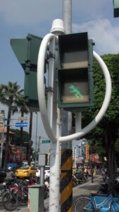 先日、横断歩道の信号を渡ろうとしたら、青信号の人型マークが急に走り始めてびっくりしました。台湾では点滅するタイミングで走るでしょう?